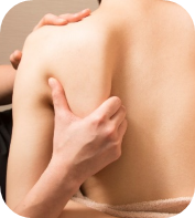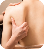 筋肉や骨格に合わせ、ストレッチを取り入れながらのハンドトリートメントを行います。体をほぐしたら、グイっと指先を入れて自慢の「肩甲骨はがし」埋まってしまった肩甲骨を取り出すように、グイグイとてを入れこんでいきます。